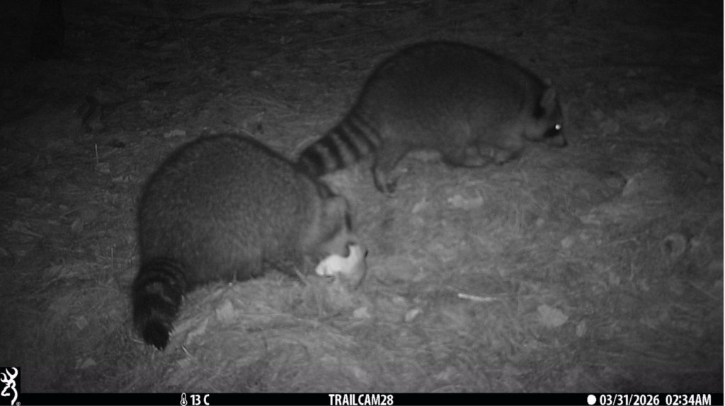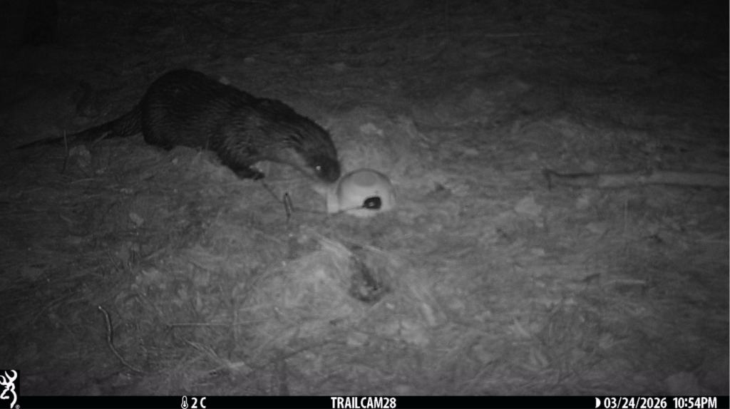 Over time, we hope to build a visual and physical record that shows how different species interact with the bowls and what their unique “signatures” look like. A raccoon’s bite marks differ from those of a fox, and both look different from the damage left by a bird of prey. Seeing these behaviors unfold on camera may allow us to confidently identify predators to species when we later encounter similar markings on real turtle shells in the field.
